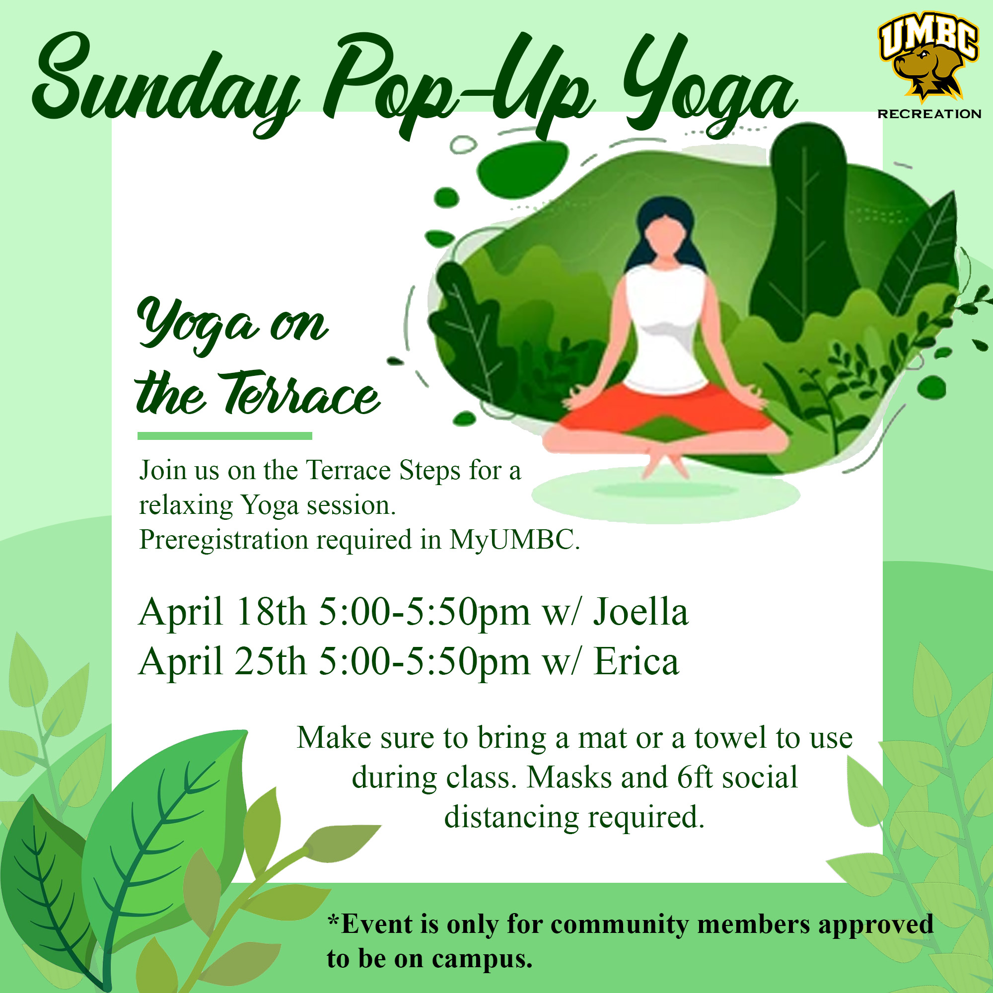Join us Sunday, April 25th for Yoga w/Erica on the Terrace Steps!