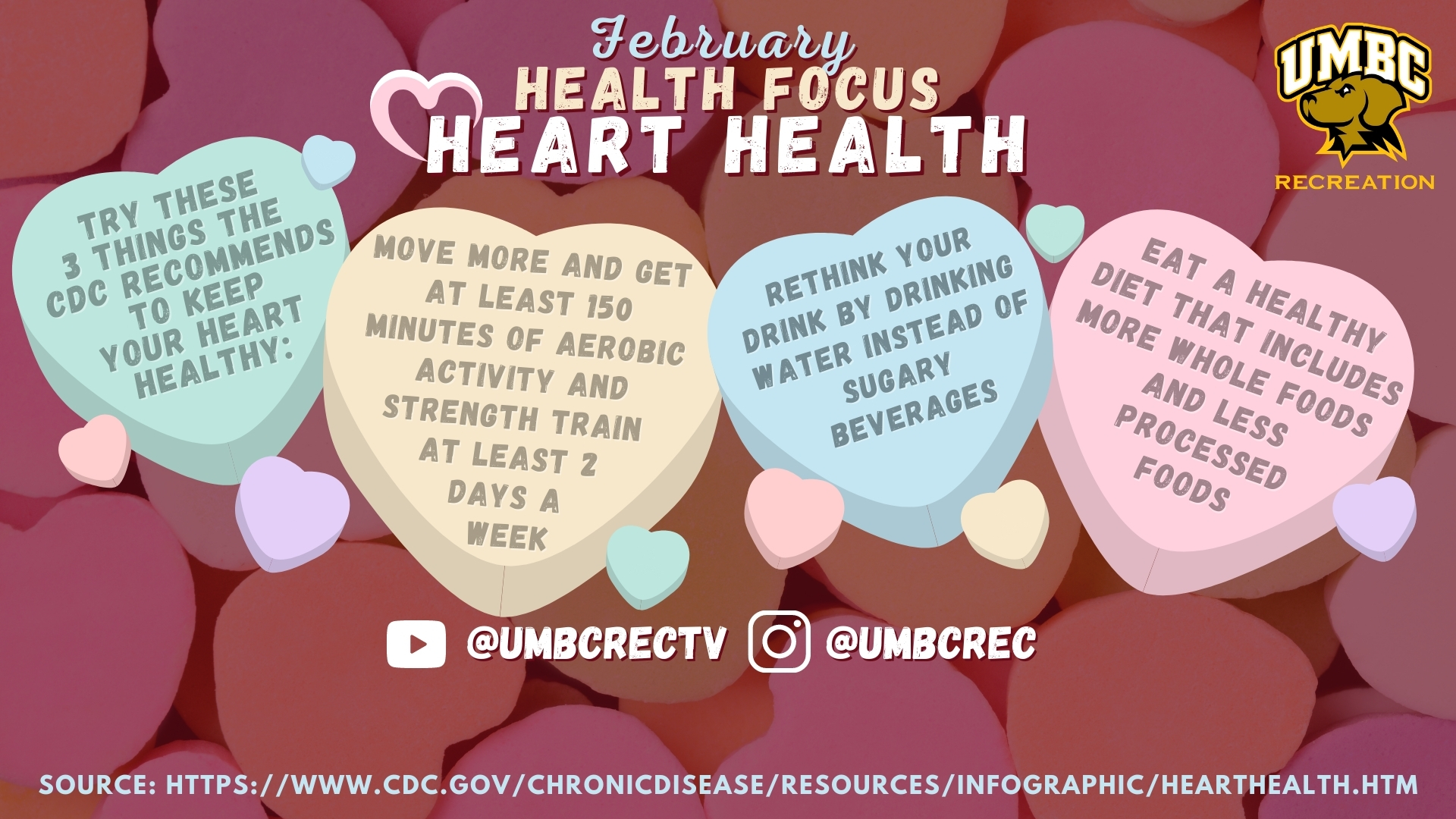 Check out these tips to improve your heart health! Attached Document for February Heart Health Month More Information about February Heart Health Month Posted: January 28, 2021, 10:08 AM