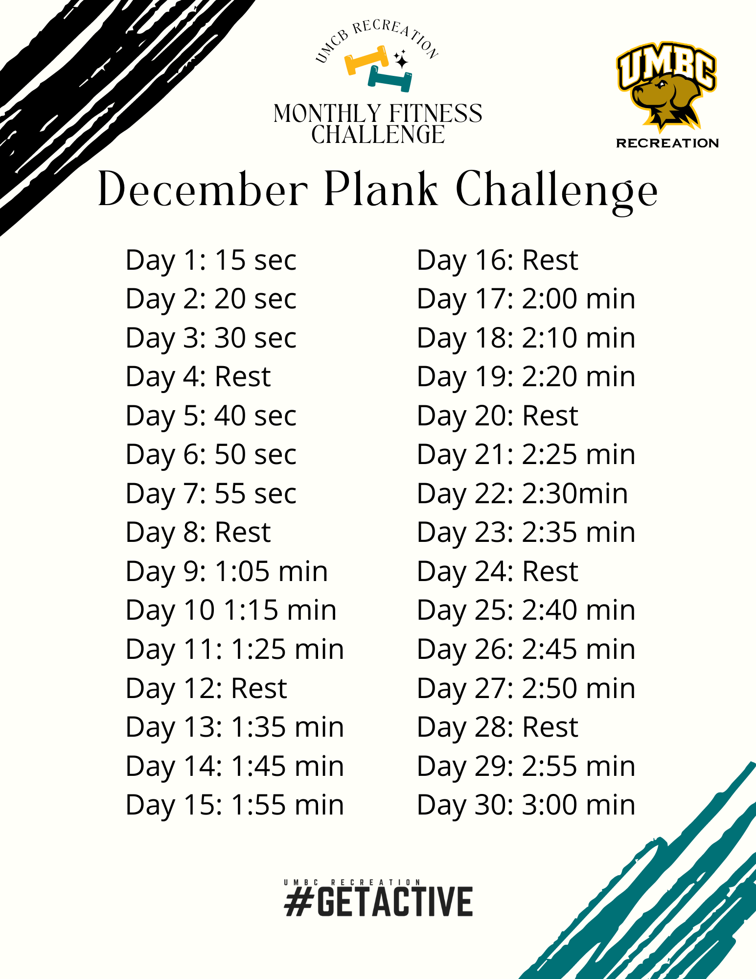 Finish the semester strong! This December complete our plank challenge and win a prize!